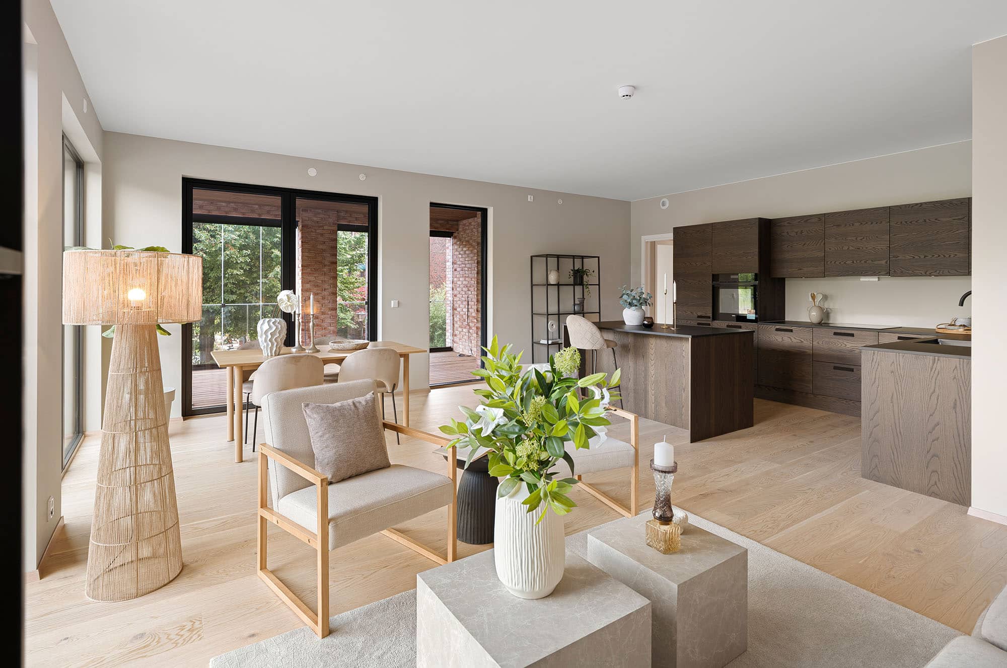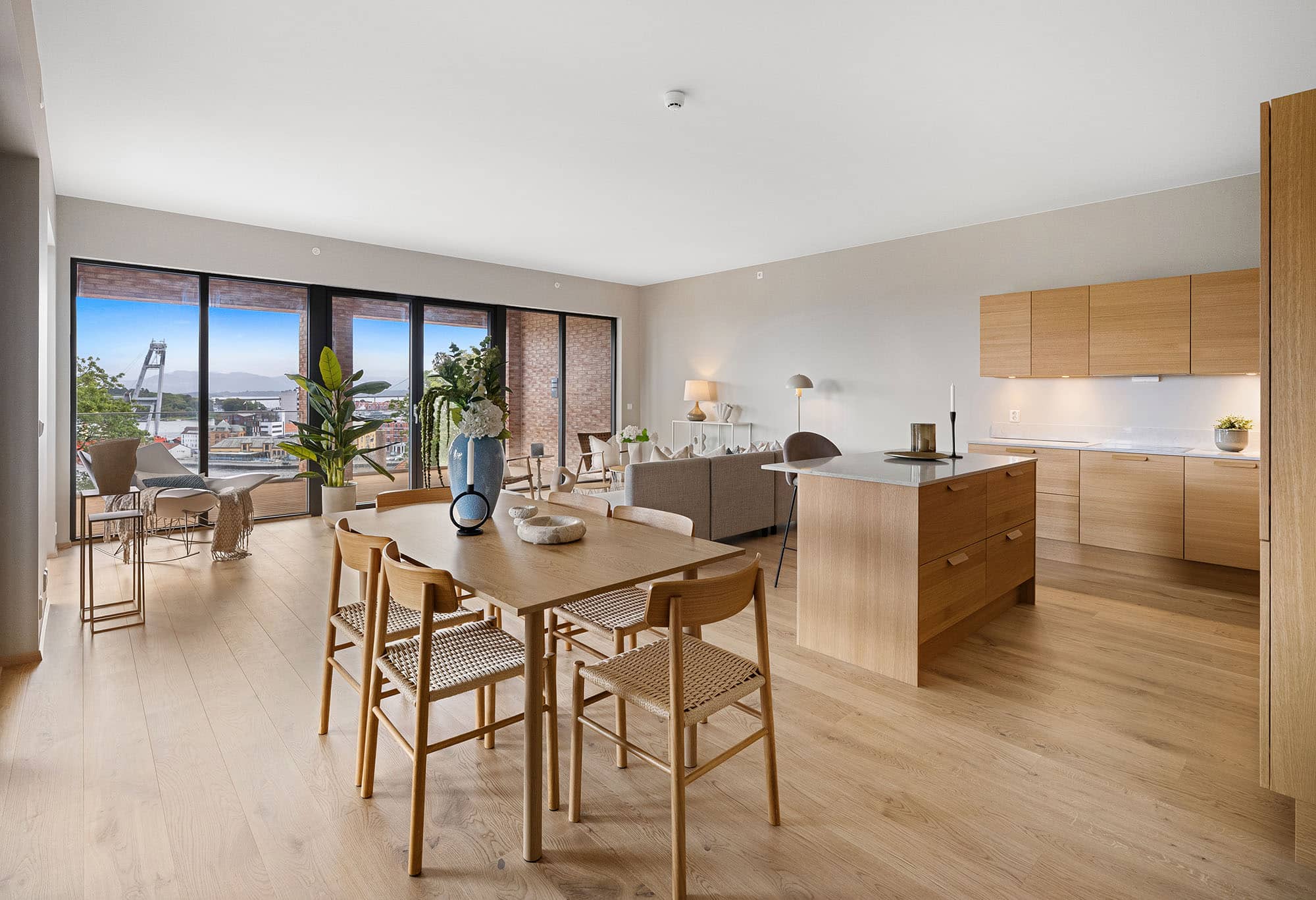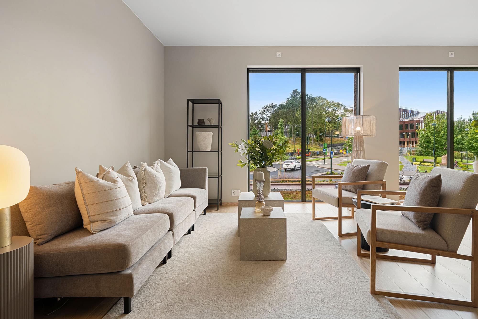 Bla deg gjennom galleriet og se ekte bilder fra byggene og leilighetene i Bykronen. Leilighetene er stylet for å gi deg et inntrykk av potensialet i rommene.