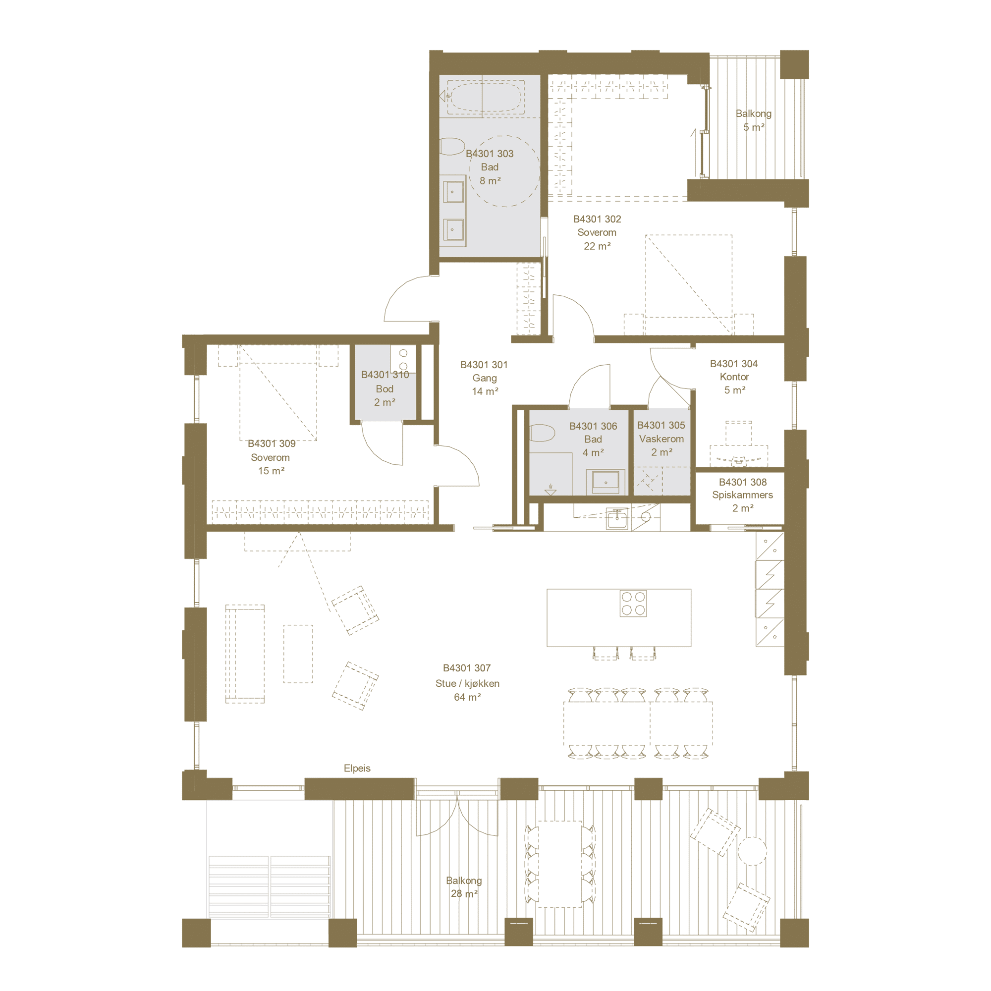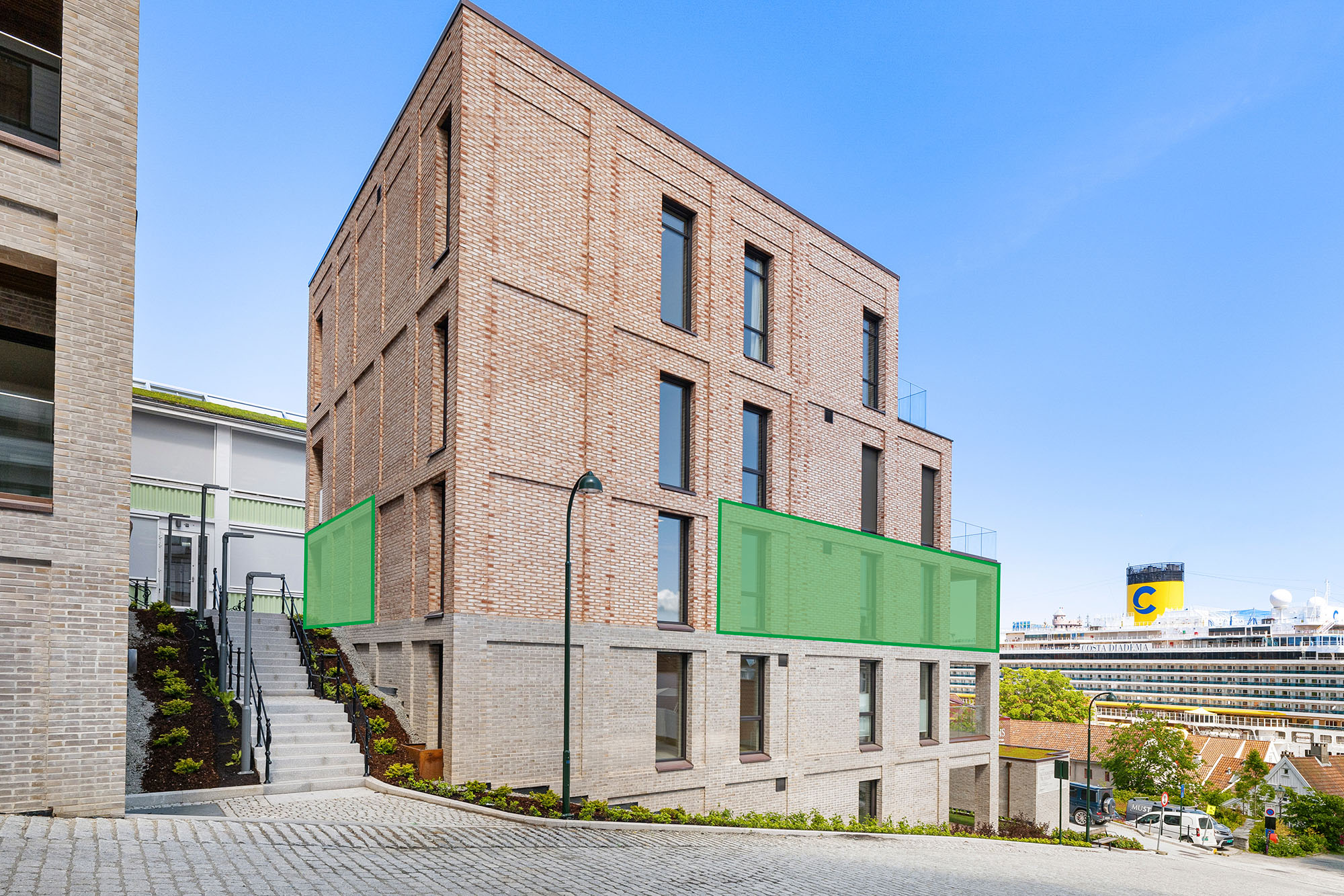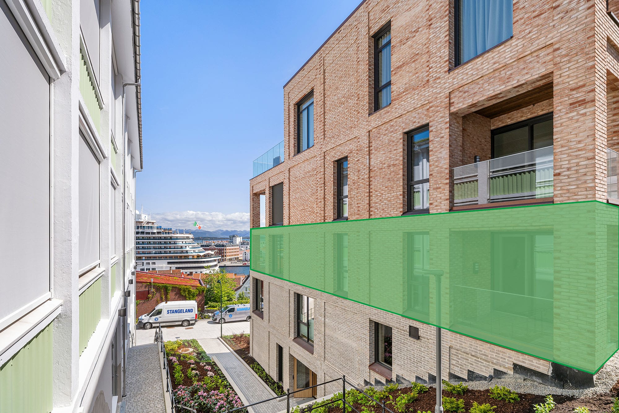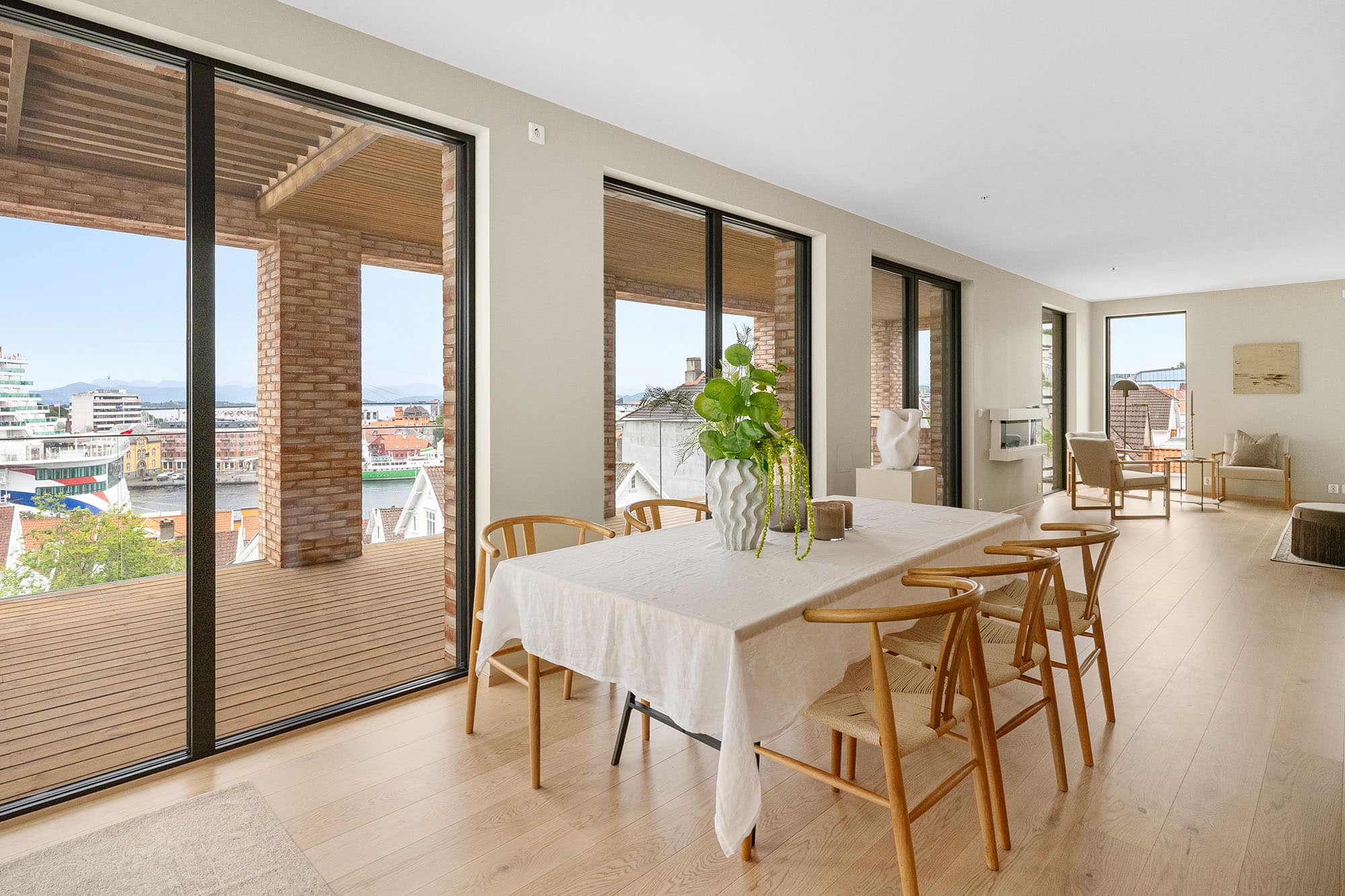Med et areal på 169 m² og en takterrasse på 139 m² byr denne premium toppleiligheten på en enestående utsikt over Stavanger, Vågen og Ryfylke – en sjelden mulighet til å bo på selve kronen i prosjektet.