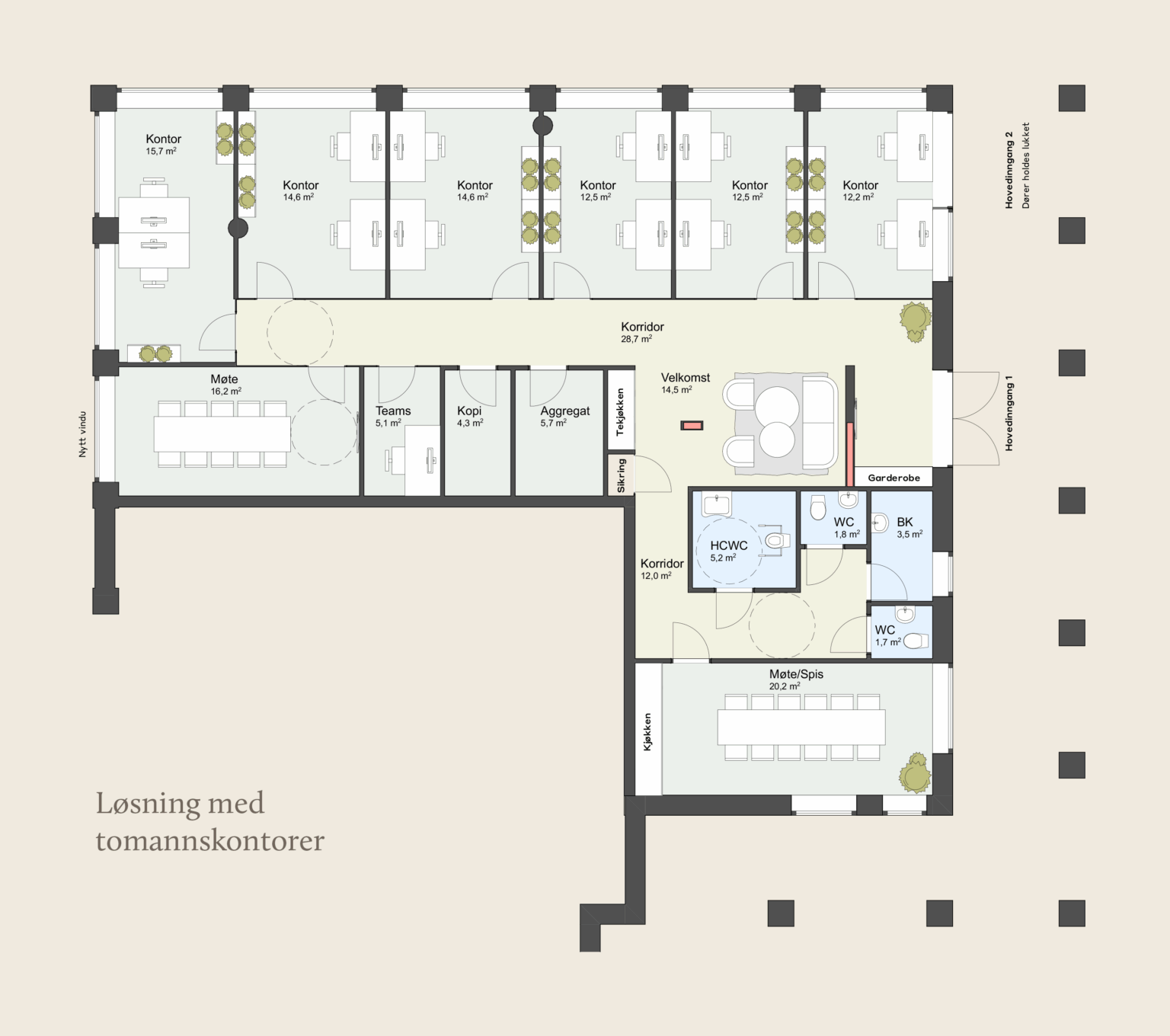 Prosjektet inneholder en næringsseksjon som vender ut mot Løkkeveien og er klar for tilpasning til eiere/leietakere.