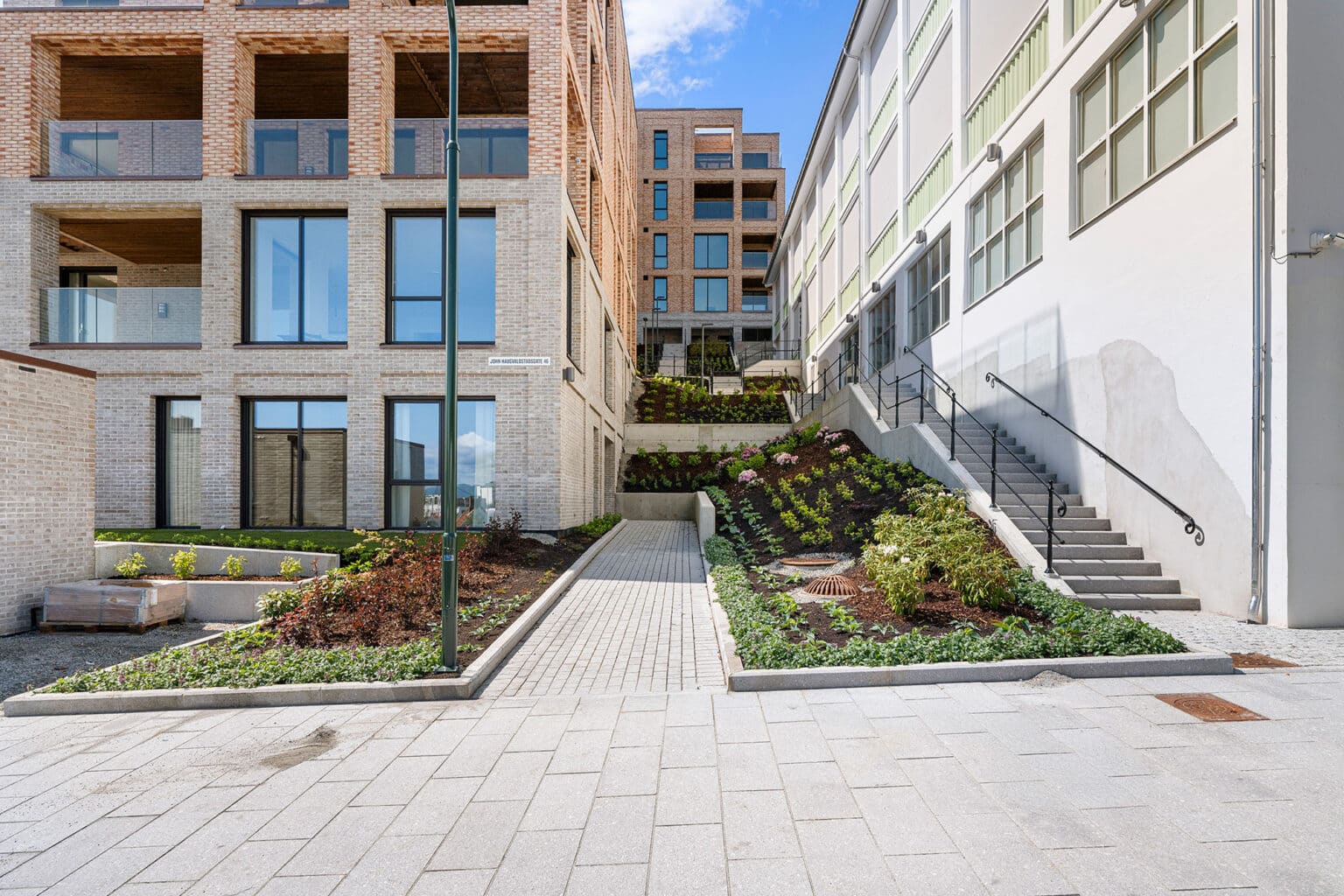 – Vi har også jobbet med å forsterke den grønne forbindelsen ned til Gamle Stavanger. Vi viderefører tradisjonene med beplantning og bruken av passasjer og smau, i kombinasjon med bærekraftig overvannshåndtering. Bykronen blir et inviterende og inspirerende kvartal.